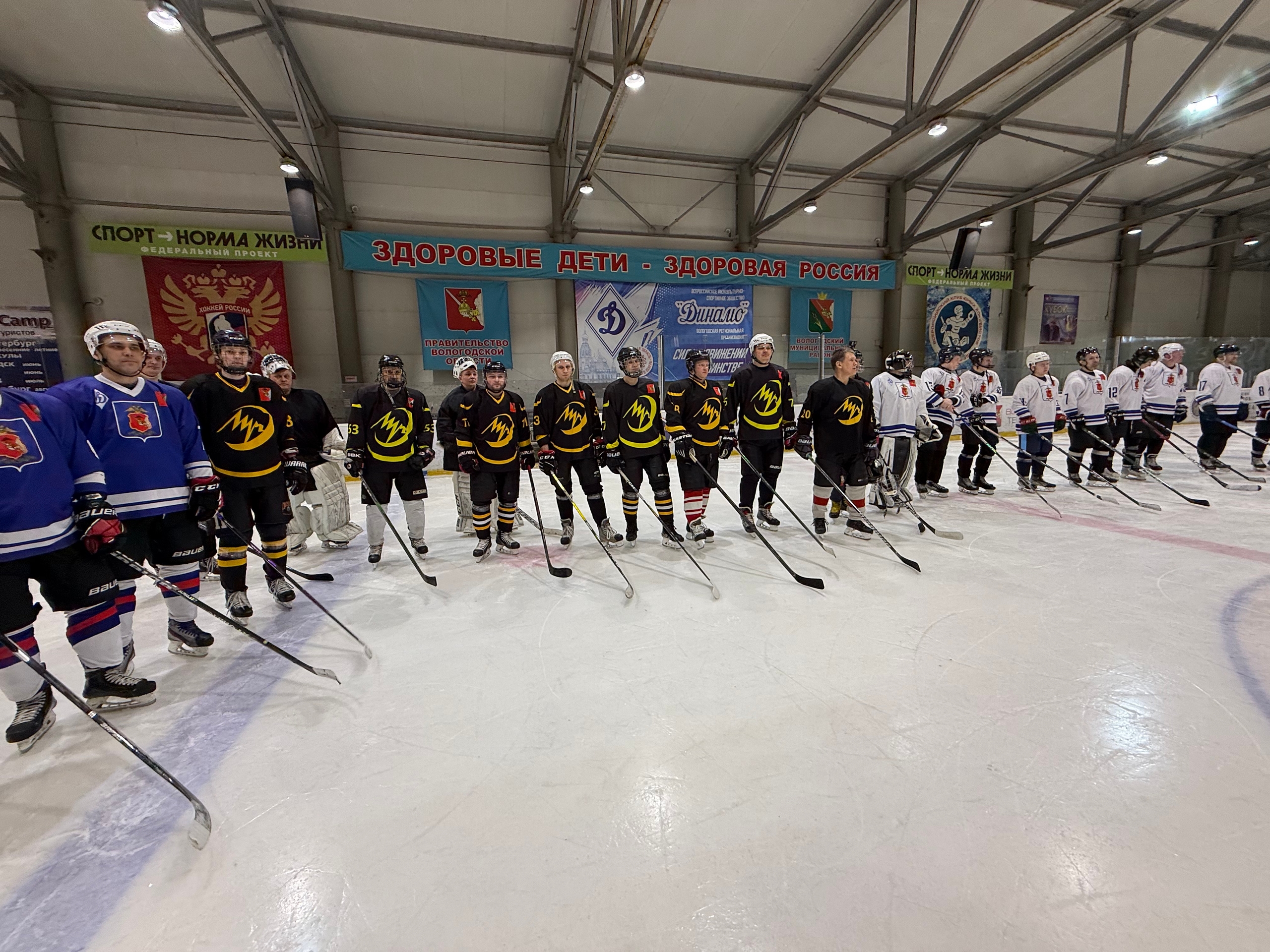 В товарищеских матчах сошлись шесть «ледовых дружин»: команды «Аргумент» (УМВД России по Вологодской области), «Звезда» (УФСБ России по Вологодской области), «Сварог» (ГУ МЧС России по Вологодской области), сборная команда ВИПЭ и УФСИН России по Вологодской области, а также «Олимп» (Администрация Вологодского муниципального округа).